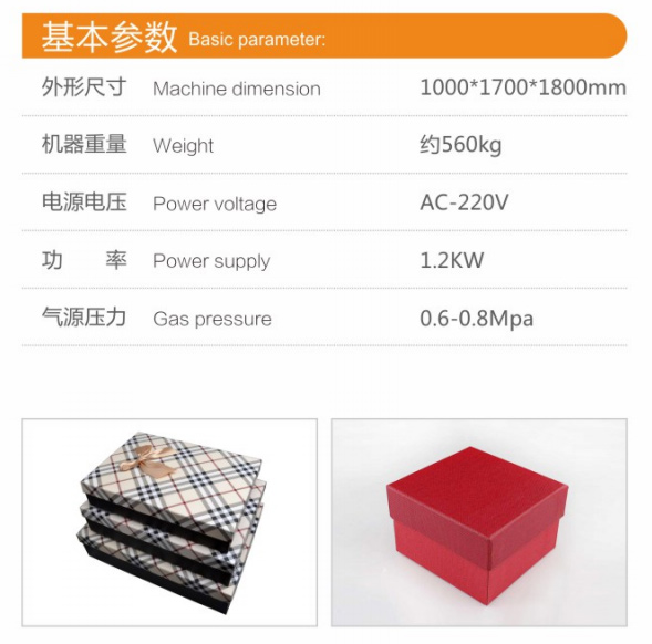 3.整機烤漆,美觀漂亮,方便簡單,易學(xué)易懂,是禮品盒生產(chǎn)企業(yè)必不可少的專用設(shè)備。